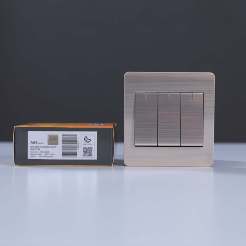 MILANO | 16A 3 Gang 2 Way Switch Gd | 210800100023