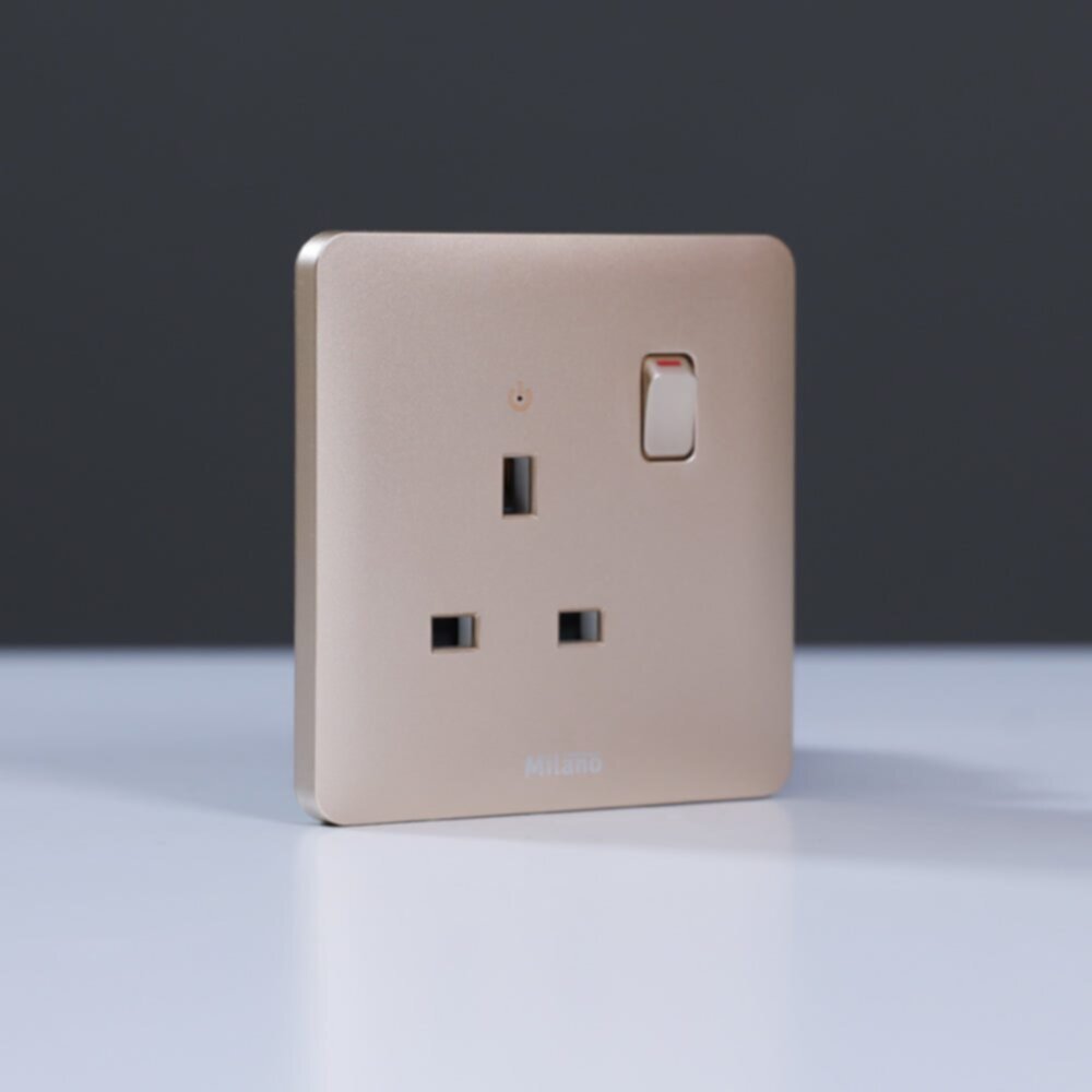 MILANO | 13A Single Switched Socket With Led Indicator-Gold | 210100300341
