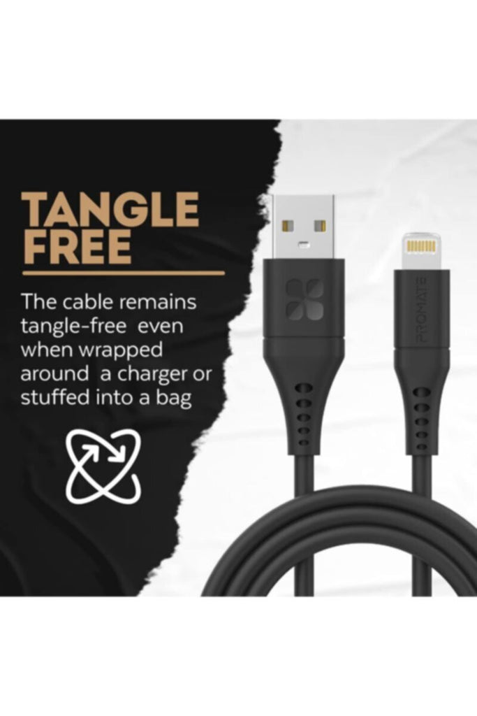 PROMATE | USB-A to Lightning Cable, Durable 2.4A USB-A to Lightning Charging Cable 1.2m Black | TE0189848