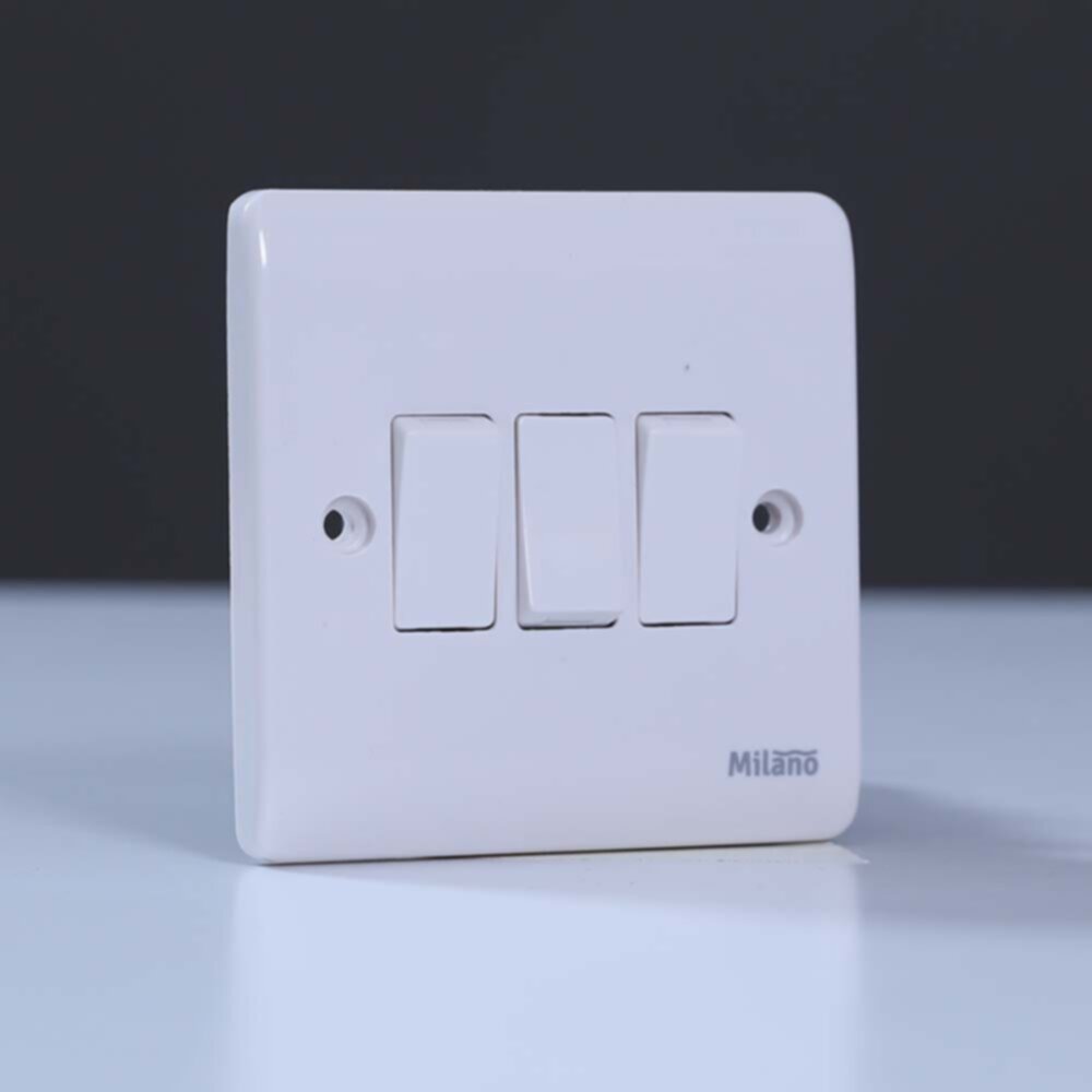 ميلانو | مفتاح كهربائي 10 أمبير، 3 عصابات، اتجاه واحد، أبيض | 210800100006