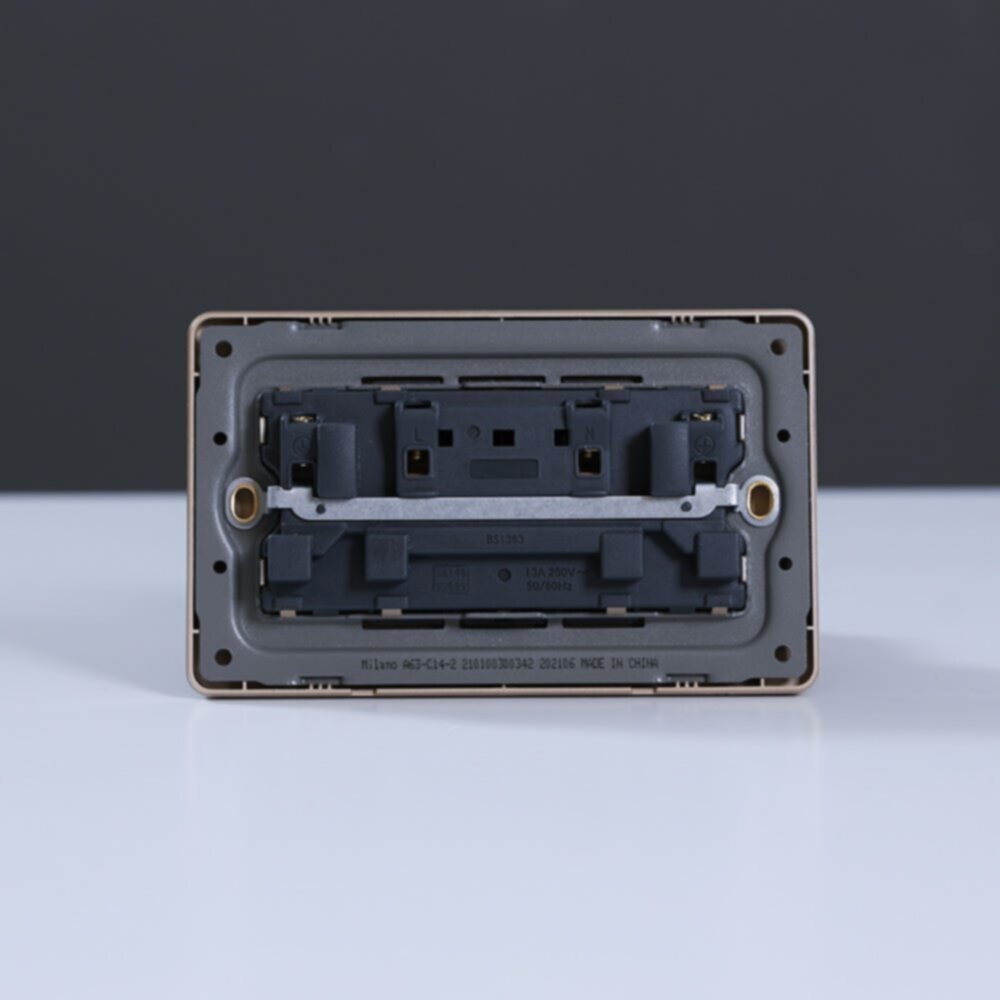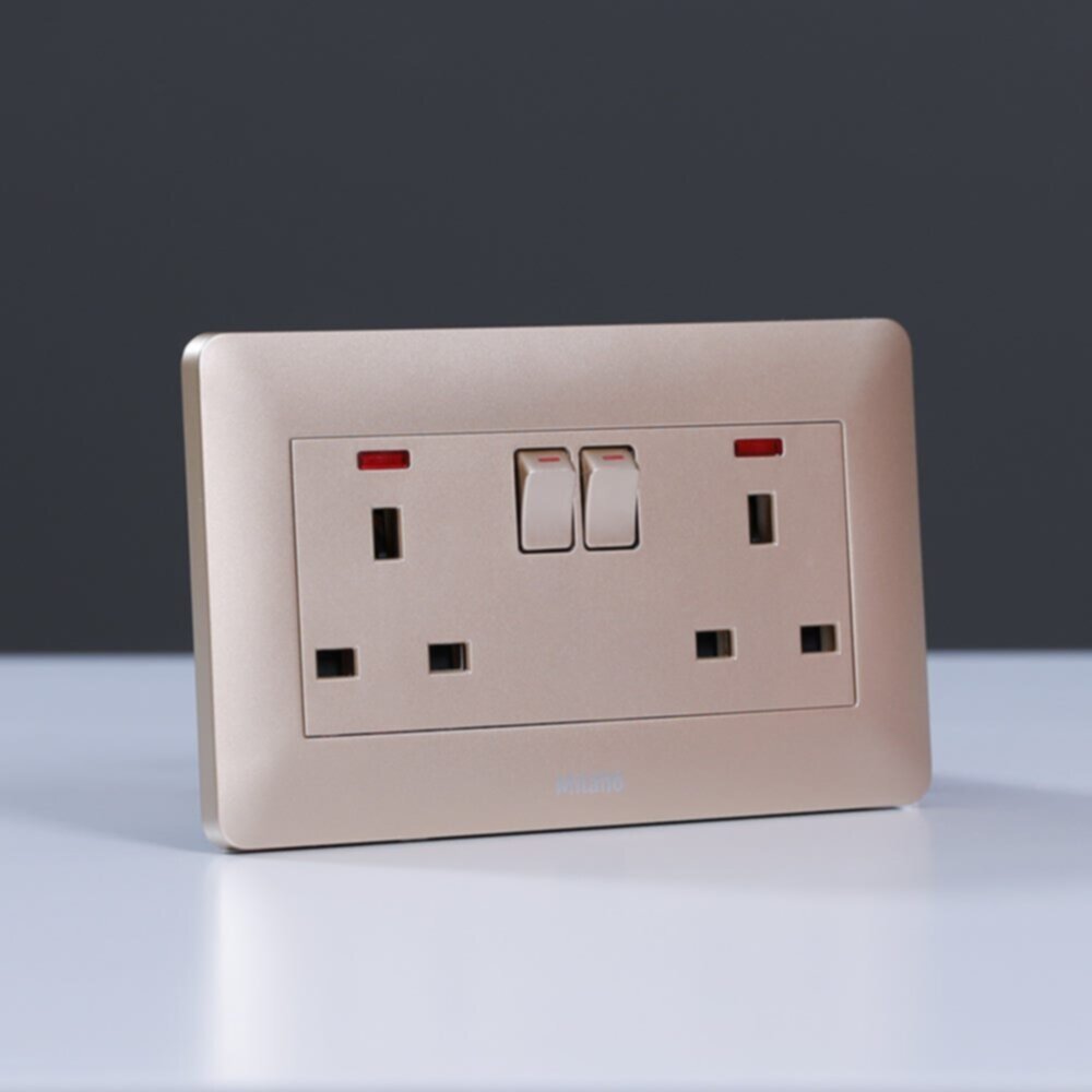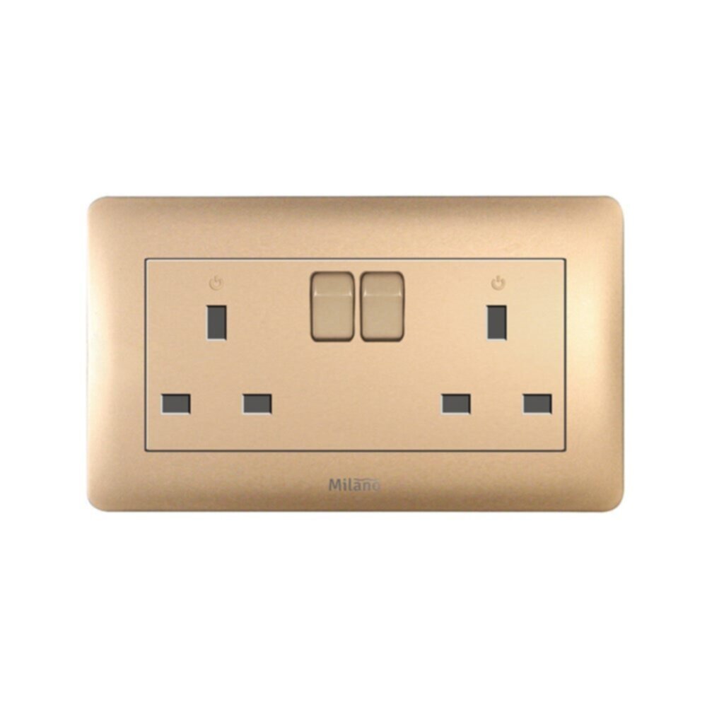 ميلانو | مقبس كهربائي مزدوج ١٣ أمبير مع مفتاح ومؤشر LED - ذهبي | ٢١٠١٠٠٣٠٠٣٤٢