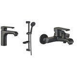 ميلانو | طقم تايم، ٣ قطع: خلاط حوض، خلاط دش، وطقم دش - أسود مطفي | ١٤٠١٠٠٦٠٠١٧٧