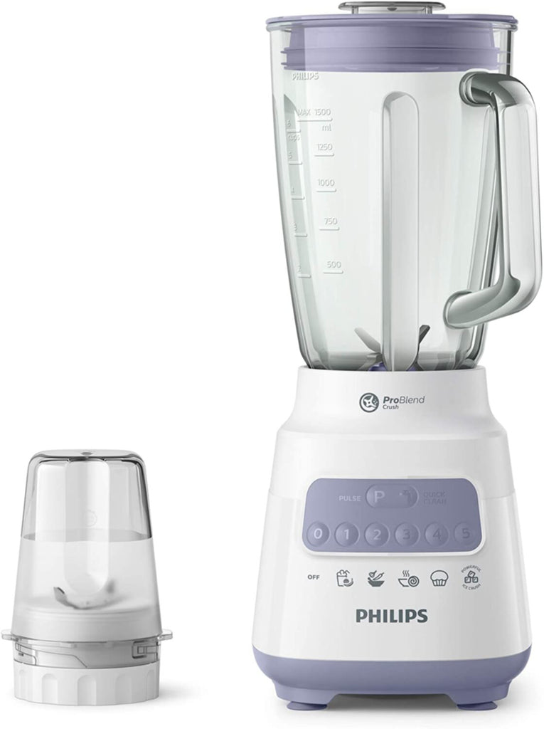 امزج المكونات بنسبة 40% أنعم واسحق الثلج تمامًا. استمتع بأفضل العصائر مع تقنية ProBlend Crush. شفرة رباعية فريدة ومحرك موفر للطاقة بقوة 700 واط يضمنان لك عصائر مثالية في كل مرة. زر سحق الثلج القوي يحول الثلج الصلب إلى مزيج ناعم، أسرع بمرتين.