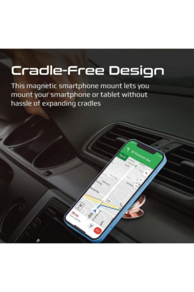 • تصميم بدون قاعدة: يتميز حامل الهاتف المغناطيسي للسيارة بتصميم بدون قاعدة، مما يعني أنك لست مضطرًا للقلق بشأن ضبط أي مشابك أو أذرع. ما عليك سوى وضع هاتفك على الحامل، وستقوم المغناطيسات القوية بتثبيته في مكانه.
