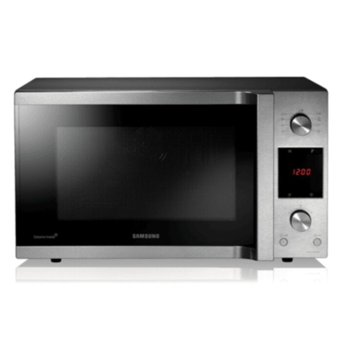 • نوع المنتج: شواية ميكروويف • العلامة التجارية: سامسونج • الموديل: MC455THRCSR • نوع التركيب: قائم بذاته • الميزات والمواصفات: الميزات الرئيسية: مستشعر ذكي: يضبط وقت الطهي والطاقة تلقائيًا. شواية وحمل حراري: خيارات طهي متعددة الاستخدامات. سعة كبيرة: 45 لترًا لوجبات عائلية. قفل أمان للأطفال: ميزة أمان لمنع الاستخدام العرضي. المواصفات: اللون: أسود، الطاقة: 1000 واط، السعة: 45 لترًا، نوع التركيب: سطح الطاولة، نوع المحرك: عاكس، خرج الطاقة: 1000 واط، قفل أمان للأطفال: نعم، طهي بالمستشعر: نعم، القدرة: 1000 واط، السلسلة: MC455، محتويات العلبة: وحدة الميكروويف، قرص دوار، دليل المستخدم، الأبعاد: الوزن: 20 كجم، الحجم (العرض × الارتفاع × العمق): 555 × 313 × 487 مم