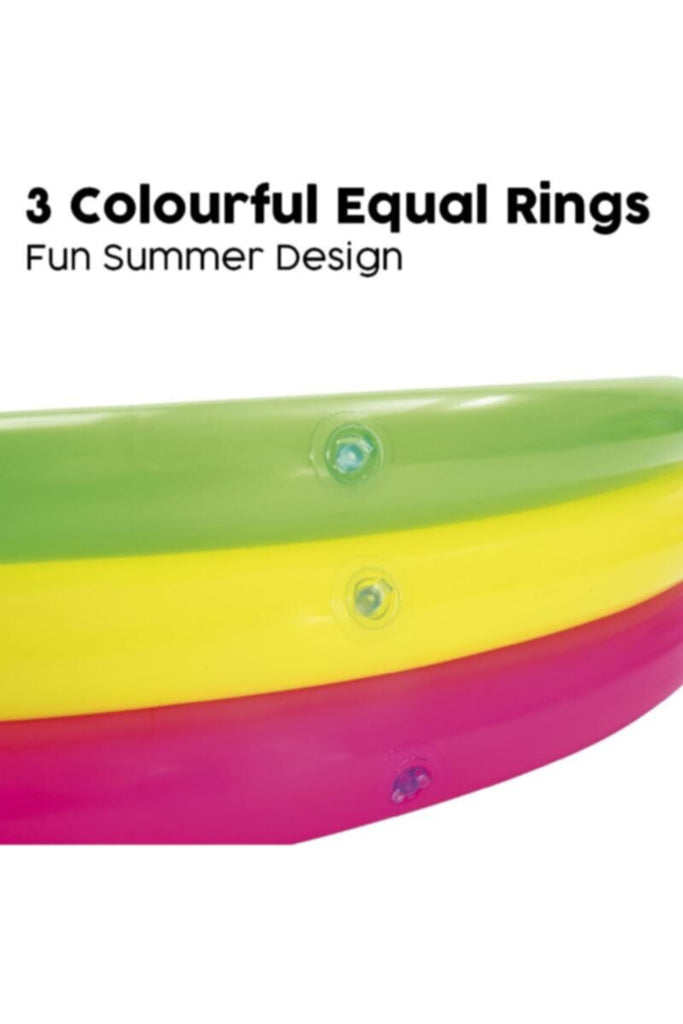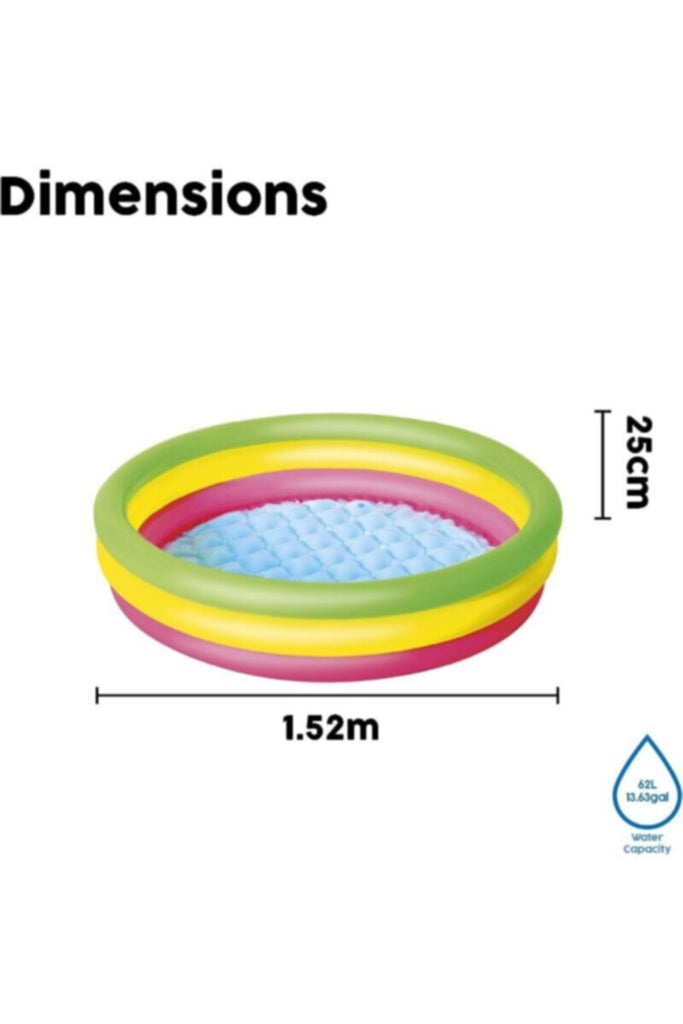 Designed to get kids moving, grooving and out of the house, this 40" x H10"/ 1.02m x H25cm Summer Set Pool is quality tested and puts the focus back on fun The Bestway Summer Set Pool is the perfect place for your child to splash about and cool off in the summer sun. Easy to set up, the play pool's three air chambers can be quickly inflated via an air pump not included. The multi colored, 3 ring construction is not only eye catching but adds stability and durability. The inflatable flooring offers a nice amount of padding when on harder ground. Splashing in the sun has never been more fun than with a Summer Set Pool Bestway kiddie pools makes it possible for kids to take a refreshing dip in the pool right in their own backyard. Following the latest fashions and trends, these inflatable pools are fun and offer kids hours of endless summer fun. Easy to inflate, deflate and store, kiddie pools are a conveniently simple option for families and a great way to introduce young ones to water.