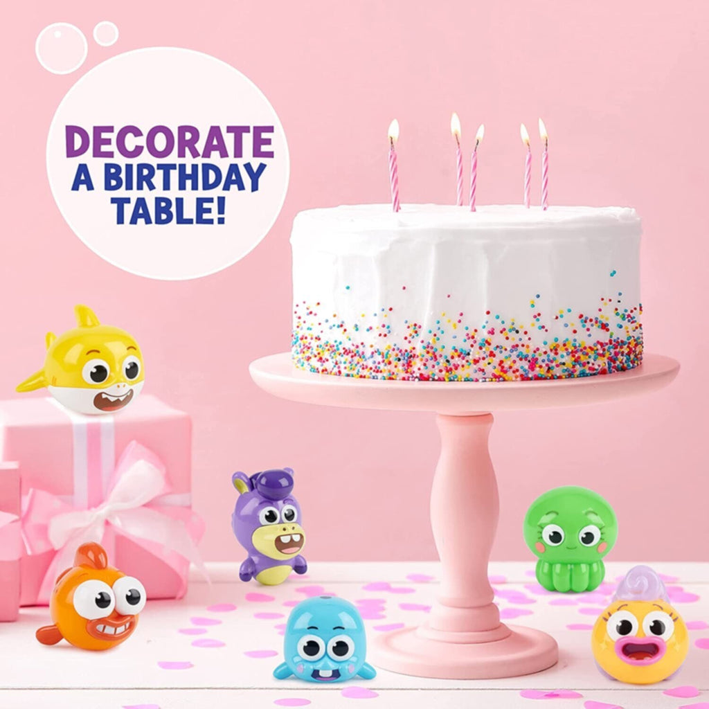 All fins on deck! Play with Baby Shark and friends with Baby Shark’s Big Show! Collectible Figures. Based on Nickelodeon’s new animated preschool series, this 6-piece figure set includes Baby Shark, William, Vola, Hank, Goldie, and Chucks. Little ones can recreate their favorite moments from Baby Shark’s Big Show! and bring these fin-tastic characters to life at home. These cute and colorful toys encourage pretend play and help kids develop imagination and gross & fine motor skills. Each figure is approximately 2 inches tall: perfect for small hands. For boys and girls ages 2 and older.