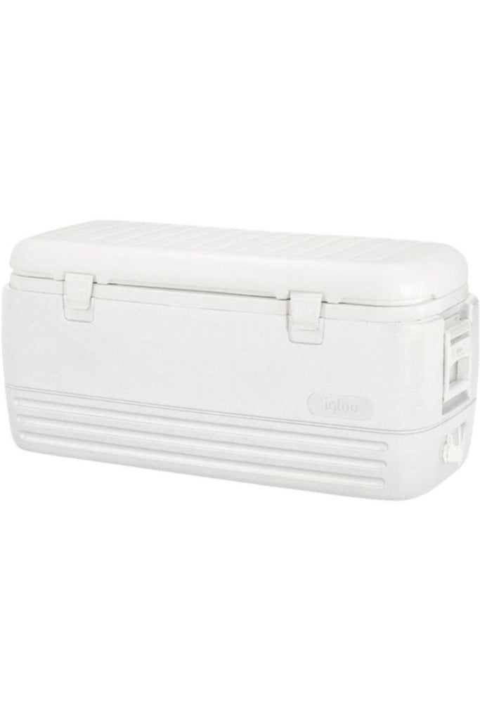 â—† Durable polar cooler featuring an Ultratherm insulated body and lid. Reinforced swing up handles with tie-down loop feature. Dual snap fit latches. Threaded drain plug. Stain and odor resistant liner. Child safety latch. 188 can capacity.