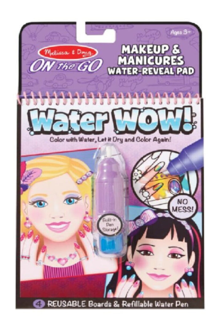 No-mess painting for kids! This exciting paint-with-water coloring book includes four reusable pages and a refillable water pen. Simply fill the pen with water and color in each scene--details and vibrant color appear with every stroke! Then let the pages dry to erase the pictures and fill them out again and again. This makeover-themed book includes four scenes of young ladies with beautiful makeup and accessories to color, plus search-and-find activities for each scene. The chunky-sized water pen is easy for kids to hold and stores neatly right in the front cover, so Water Wow! makes an ideal travel activity book and travel toy.