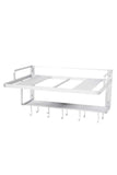 â—† [3 in 1 Simple Style]: Simple style metal kitchen pot microwave grid, first layer specially designed to hold microwave ovens or some pots and pans, second layer to hold some smaller spice jars along with 10 hooks to hang a spoon washer Keep your kitchen going neatly organized, the best choice for kitchen storage organizers