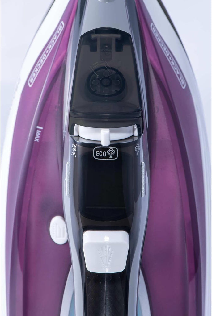 The Black+Decker X2250-B5 is a powerful, high-speed steam iron designed for exceptional performance and precision. With its 2800 W heating system and digital LCD display featuring a fabric selection guide, it ensures accurate settings for all fabric types. The anodized soleplate offers smooth gliding, while adjustable steam modes—including Dry, Eco, and Boost—address different ironing needs efficiently. Equipped with features like auto shut-off, self-cleaning, vertical steaming, and anti-calc functionality, this iron delivers both convenience and durability
