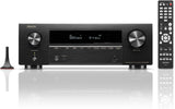 Add a Denon X Series AVR X1800H 7.2 Channel Network A/V Receiver to your home and enjoy immersive 3D audio surround sound and a whole home streaming audio solution. Enjoy theater like movie sound with support for 7.2 channel speaker systems, or 5.1.2 setups for height based audio effects using Dolby Atmos or DTS:X sources. Plug in a wide array of sources into six HDMI inputs with support for vivid and contrast rich 8K60 or 4K120 resolutions with HDR10+ or Dolby Vision. HEOS Built in can handle music streaming to compatible speakers throughout your home. Wi Fi and Bluetooth support lets you stream from online services or mobile devices. Setting all of this up is made easy with Denon's step by-step assistant and room calibrating Audyssey technology. HEOS Built In Home Streaming Stream music directly from the AVR X1800H to every room in your home that contains a HEOS compatible speaker. Play the same song in every room or a different song in each. Managing the experience is easy with the HEOS mobile app. Wi Fi and Bluetooth Streaming audio via Bluetooth from your smartphone or tablet, or use the dual antennas and Wi Fi support to access audio on your home network or via streaming services, such as Spotify, Tidal, Amazon Music HD, or via Apple devices using AirPlay 2. Hi Res Audio Whether you stream music wirelessly or play from a connected USB drive, the AVR X1800H supports Hi Res Audio quality files for the best possible listening experience. It supports Hi Res Audio at 192 kHz/24 bit ALAC, FLAC, and WAV files as well as 2.8/5.6 MHz DSD files. HDMI with ARC/eARC A total of six HDMI inputs and two outputs are provided to connect your TV, set top box, streaming media device, Blu ray player, gaming console, and more. Three of them can handle 8K60 resolution and support for ARC/eARC technology, letting you pass TV audio through the receiver with a single HDMI cable. Speaker and Bluetooth Playback You can play audio through connected speakers and wirelessly through optional Bluetooth headphones at the same time. This is an ideal solution for anyone with friends and family that are hearing impaired, letting them enjoy audio through headphones as everyone else listens to the speaker system. Guided Setup and Custom Calibration Use the Denon Setup Assistant for guided step by-step setup of the receiver. An Audyssey measuring microphone is included to measure the acoustics in your room, and use Audyssey's MultEQ room correction technology to custom calibrate settings to match you space. Further adjustments are possible using the Audyssey MultEQ Editor app on your iOS or Android phone or tablet. Multi Zone Audio Even without HEOS, you can setup a two source/two zone audio experience. With a pair of optional speakers in a second room, you can still use the AVR X1800H to produce a 5.1 channel surround experience in the main room, while listening to another audio source in a second room. Flexible Control You have multiple options when it comes to controlling playback and managing the AVR X1800H. You can go the traditional route with the included remote control, use your mobile device with the Denon AVR Remote, or use your voice through Alexa, Google, or Josh.ai. Additional Features 80W per channel Upmix legacy content with Dolby Surround or DTS Neural:X Lag free gaming with VRR, QFT, and ALLM support Rear USB power for optional accessories/dongles Wired Ethernet connection Front headphone and USB ports