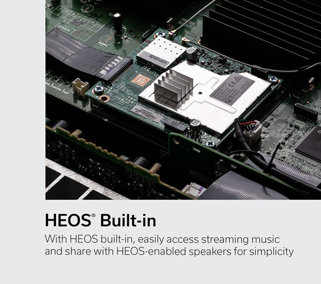 • HEOS built in technology: Stream music wirelessly from a variety of free and premium streaming services. Share content to HEOS devices, like Denon Home speakers, in other rooms.
