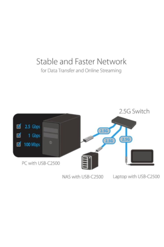 • Wide compatibility for USB 3.0 port – Compatible with Windows, Mac OSX, and Linux. Conveniently upgrade your NAS, laptop or desktop to hyper fast 2.5G transfer speed