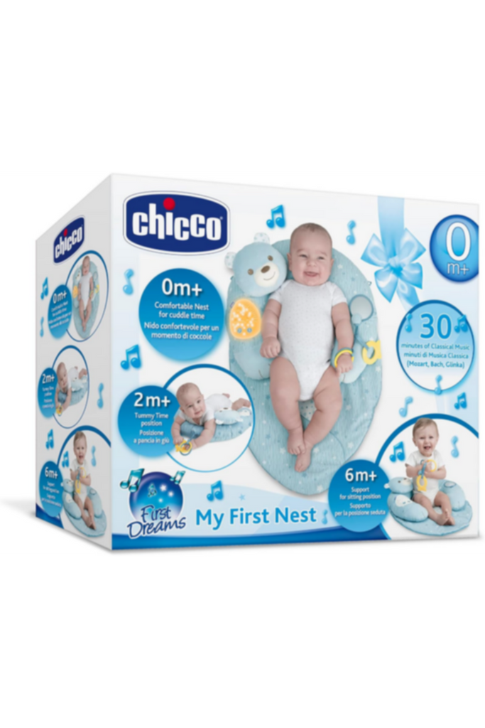 Chicco My First Nest is the evolutionary mat that allows your baby to relax during the various stages of growth. Comfortable and safe, Chicco My First Nest allows 3 different sleeping positions, ideal for facilitating the muscle and motor development of the baby. With automatic 30 minutes of classical music and delicate light effects, Chicco My First Nest creates a familiar and reassuring environment, a tender nest in which to grow up happy. Both the mat and the pillow are machine washable. 3 rest positions: Lying down: a comfortable nest for cuddling. Tummy Time: ideal for strengthening the baby's muscles in the prone position. Sitting: a soft support for the seat. Electronic features include 30 minutes of classical music. Dynamic light effect: delicate or lively according to the rhythm of the music. Also available in the blue version.