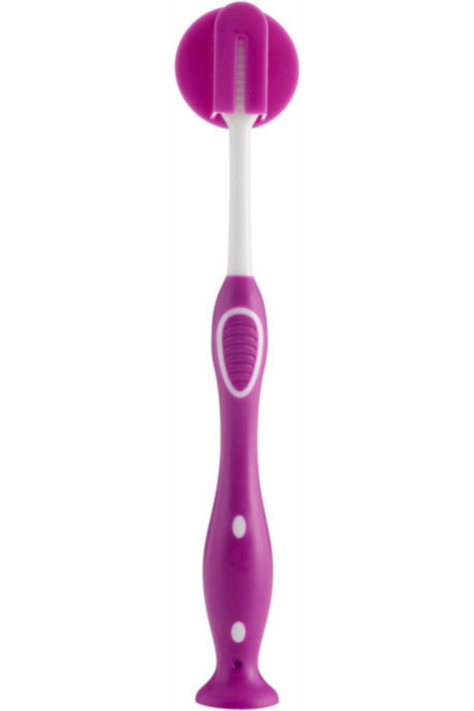 Very Soft "Tapered Technology "Bristles, With Ultra Fine Ends, For A Delicate Action On Enamel And Sensitive Gums. Head With Tongue Scraper. Ergonomic, Slip Proof With Its Fun Bristle Cover And Suction Cup, Brushing Teeth Will Become An Enjoyable Routine!.