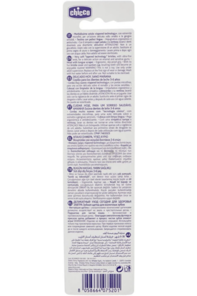 • Tongue Scraper: Chicco Toothbrush is equipped with a tongue scraper. Thus it is ideal for a child's mou