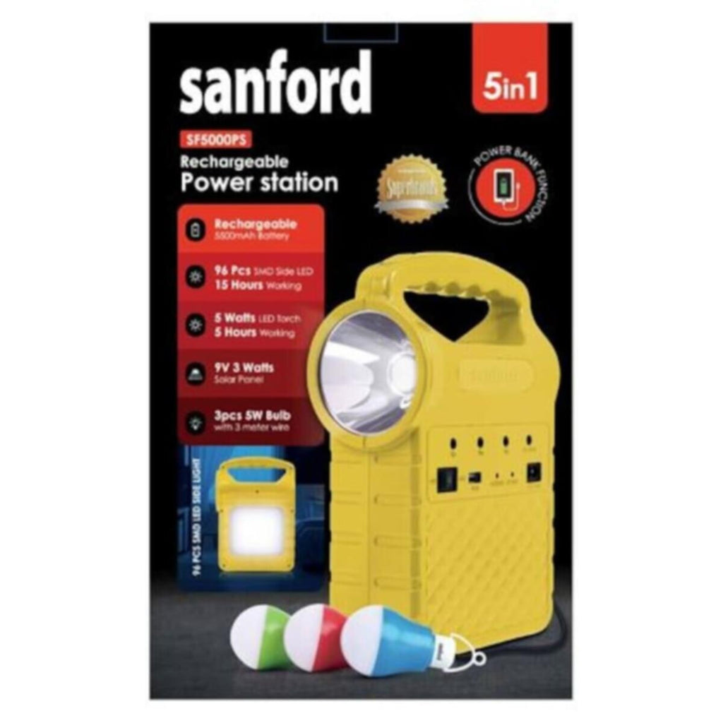 • Powerful 5 in-1 multifunctional rechargeable power station