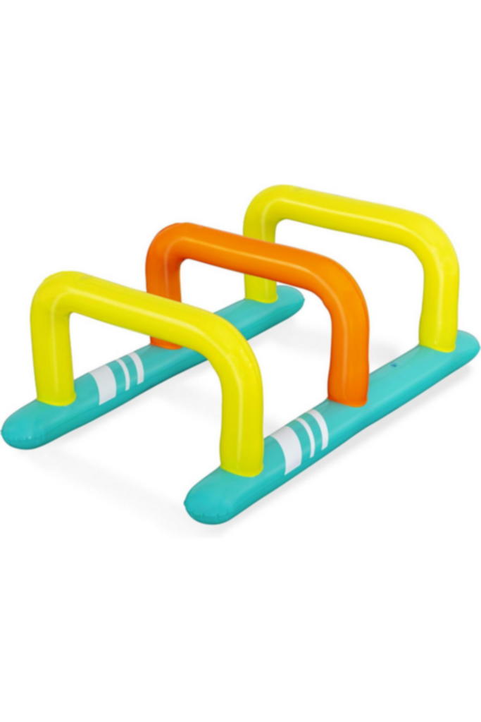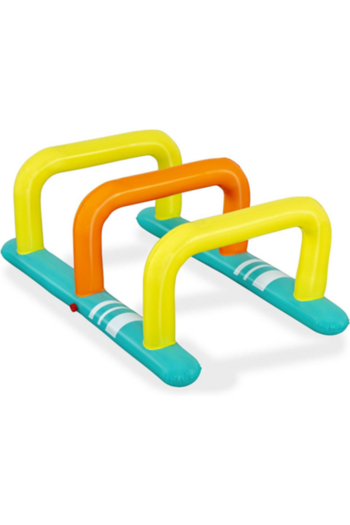 The Bestway Hop Zone Sprinkler creates a fun water obstacle course in minutes. This inflatable sprinkler toy features three bars for jumping over or crawling under. Built in sprinklers on each bar make for splashing good time. Setup is quick and easy, just inflate the sprinkler and connect it to a garden hose. Kids will love playing with friends, racing and jumping around the Bestway Hop Zone Sprinkler!