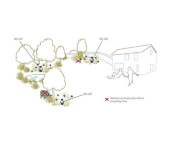 In comparison to the BG Mosquitaire trap, it targets a different stage of the mosquitoes: Mosquitoes that have already bitten and are now searching for a place to lay their eggs. Previously blood fed mosquitoes that are targeted by the BG GAT are important to remove from the population. Trapping these females can eliminate 50 100 offspring from the next generation and prevent the potential for disease transmission from virus infected mosquitoes.