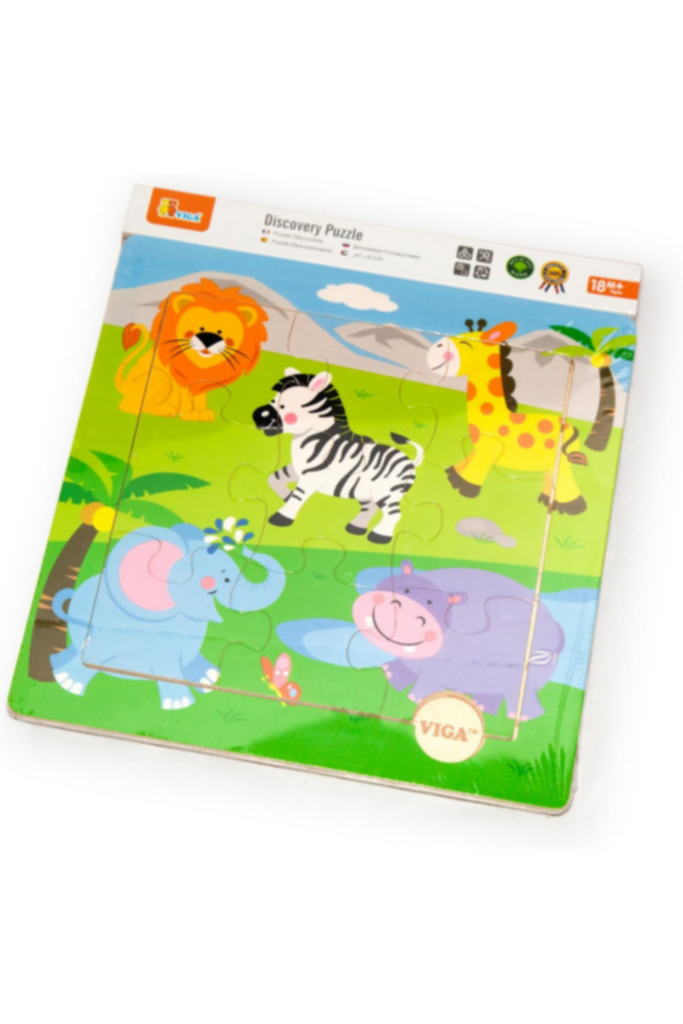 • A classic flat puzzle including 9 pieces. Interlock the pieces following the hint from the nice solid images underneath.