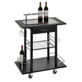 This eye catching serving trolley can turn any room into a space meant for entertaining. It flaunts a sleek metal construction, with clean lines and traditional elegance. The upper shelf has plenty of room to keep frequently used items with multiple racks below the top shelf allowing you to place multiple glassware. It also has four wheels to move easily around your space.