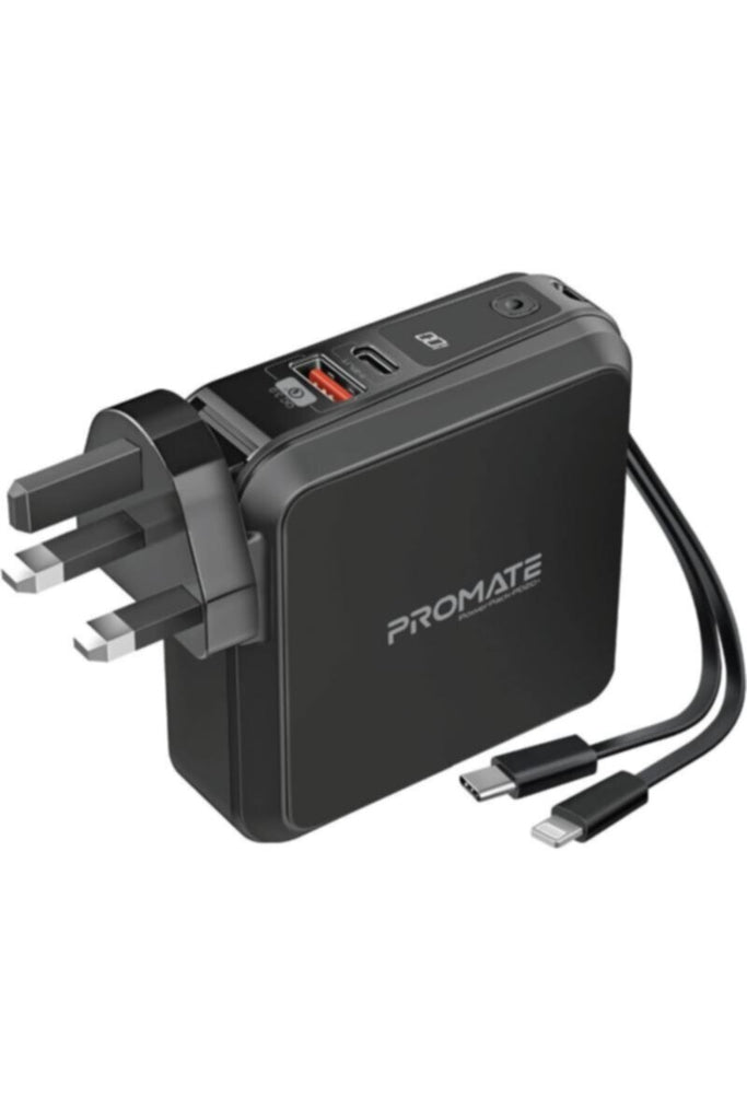 PROMATE | Universal 15000mAh Power Bank Portable Charger with AC Plug, Phone Holder, Built-In 22.5W USB-C Power Delivery Cable | TE0181281