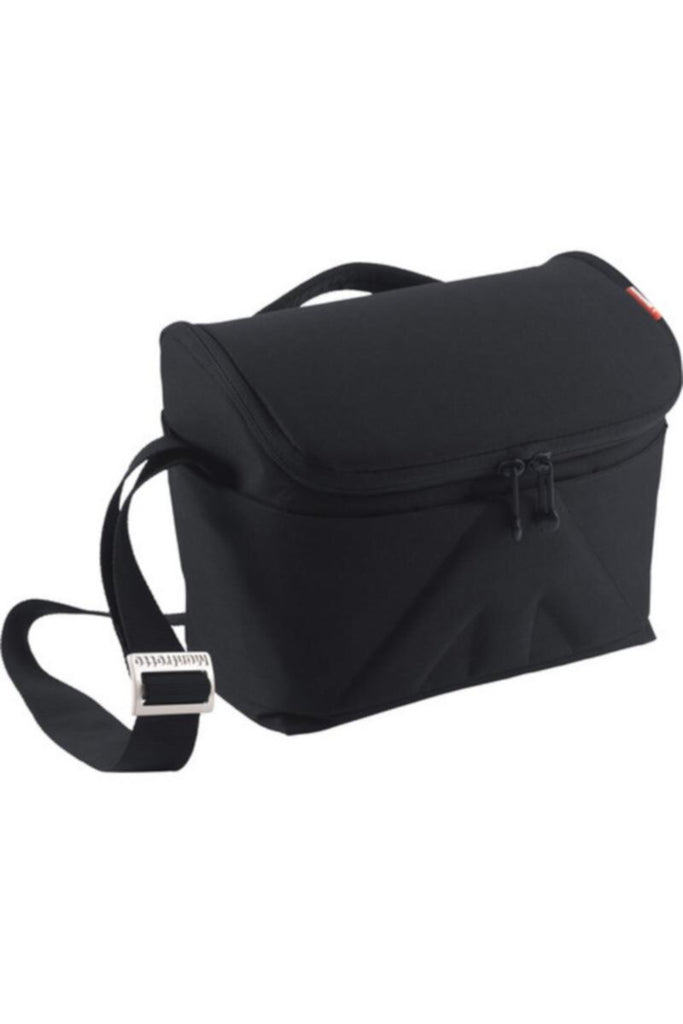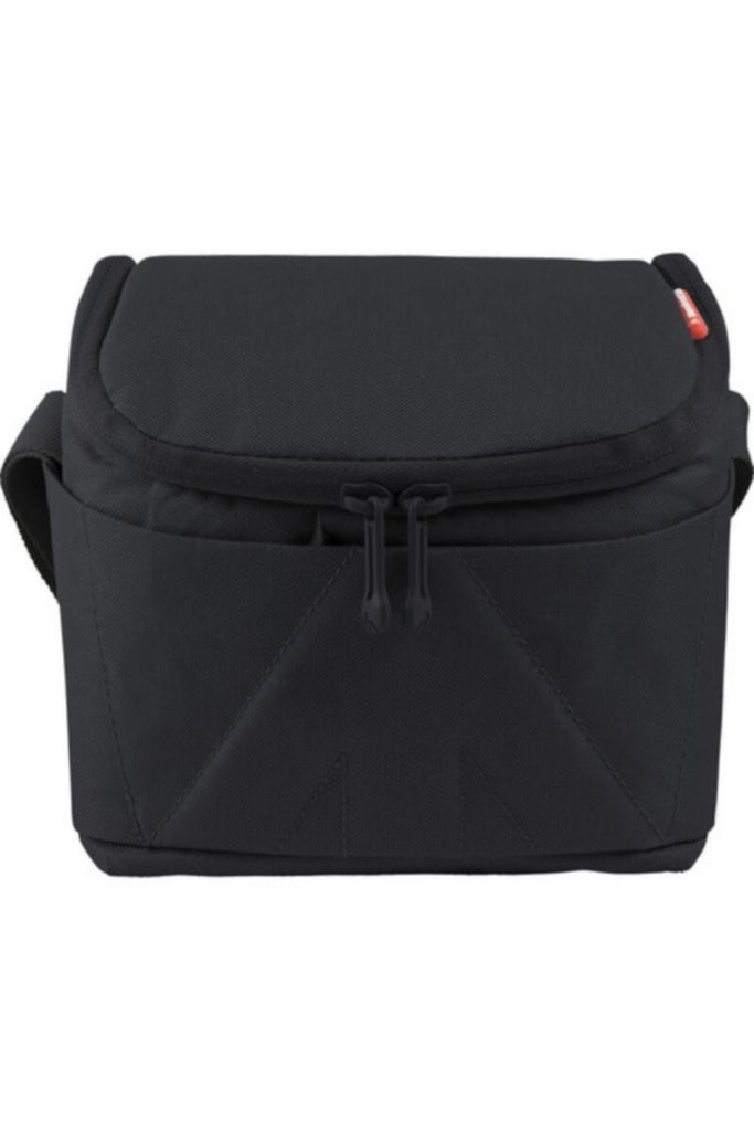 Stealthy, compact, attractive, minimal, water resistant, and with all the features required for street or travel photography, the black Amica 50 Shoulder Bag from Manfrotto is designed to hold a DSLR camera with an attached standard zoom lens and two extra lenses. A versatile bag, it has interior and exterior slip in pockets for small accessories such as a cell phone, cables, and the like. Double zipper pulls provide for confident and water repelling closure, while padded, touch fastening dividers are useful for organizing and protecting gear. Carry your Amica with the padded top handle or wide, adjustable shoulder strap.