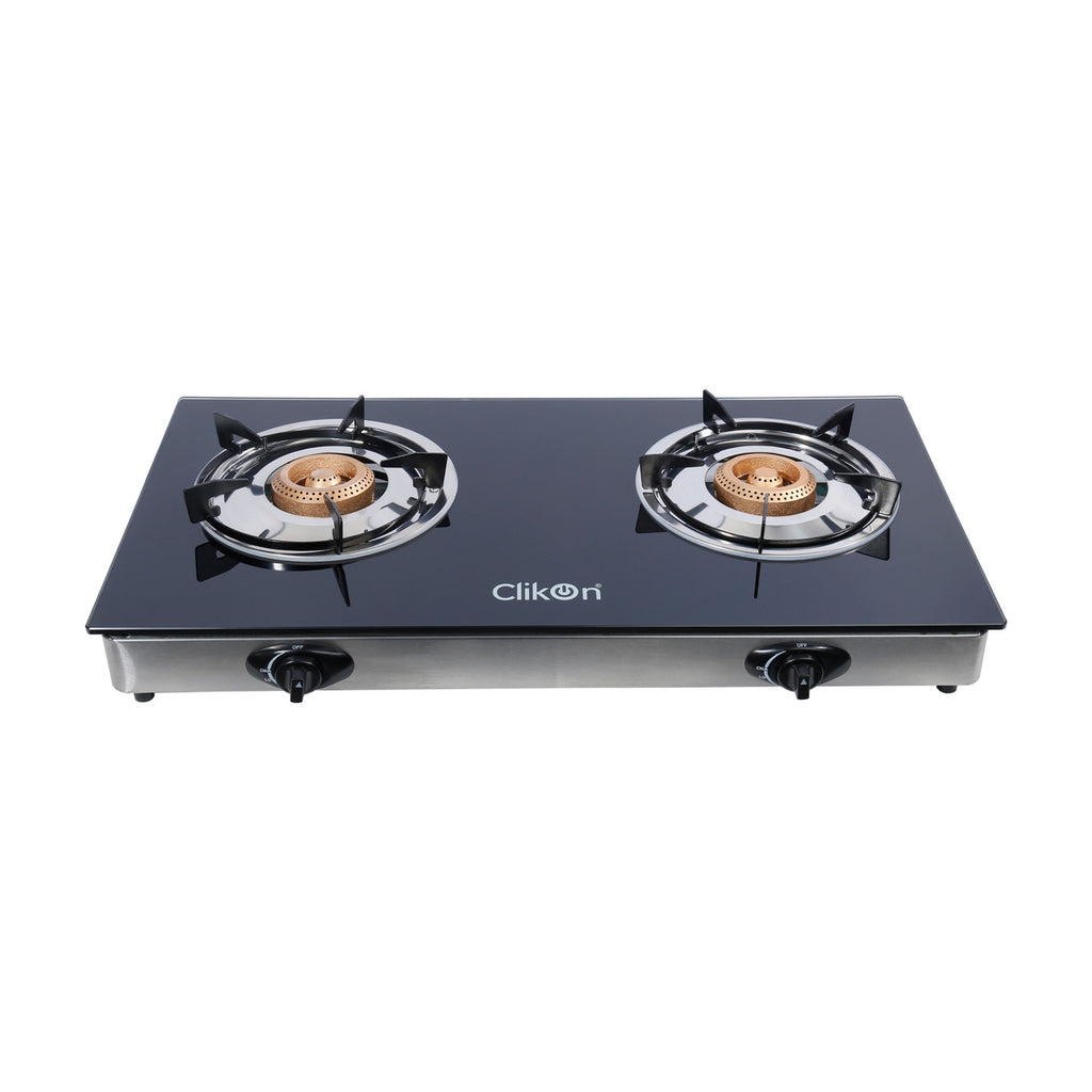 Enhance your cooking experience with the Clikon 2 Burner Glass Top Gas Stove, a perfect blend of style and functionality. Featuring a sleek 7mm tempered glass surface, this stove not only adds a modern touch to your kitchen but also ensures durability and easy cleaning. Equipped with two high efficiency brass burners, it provides consistent heat distribution for optimal cooking results. The auto piezo ignition system offers hassle free operation, eliminating the need for external lighters. With its compact design and sturdy construction, the Clikon 2 Burner Glass Top Gas Stove is an ideal choice for contemporary kitchens.