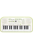 32 mini keys make it easy to play, even for small hands 100 high quality built in tones covering a range of instruments, including piano, wind, percussion and many others, sampled from acoustic instruments Tone direct buttons let you select piano, trumpet or drum set tones with a single touch 50 rhythm patterns in a variety of genres, including pops, ballad, dance, and more 10 built in songs to play along with – or mute the melody and play it yourself Songs: Ode to Joy, Little Brown Jug, Minuet in G major, Twinkle, Twinkle Little Star, Yankee Doodle, The Nutcracker, Greensleeves, Jingle Bells, Silent Night, Joy to the World