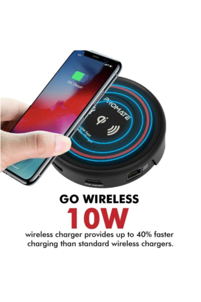 • 7 In 1 Multifunction USB C Hub Detachable Qi Wireless Charger Plug and Play 4K Video