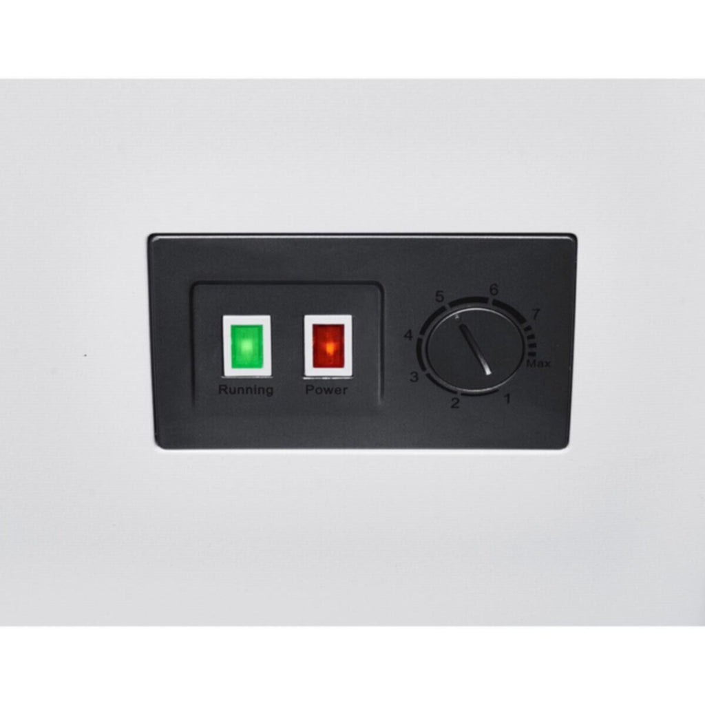 • Features a compact and sleek white exterior, easily fitting into modern kitchens, garages, or pantries without taking up excessive space