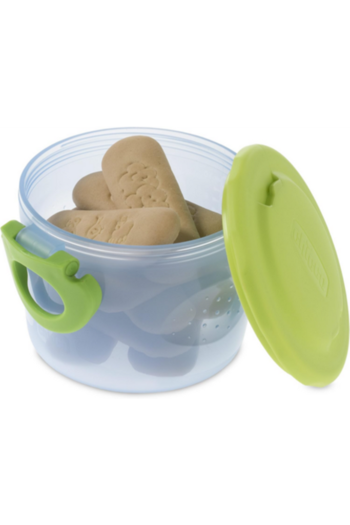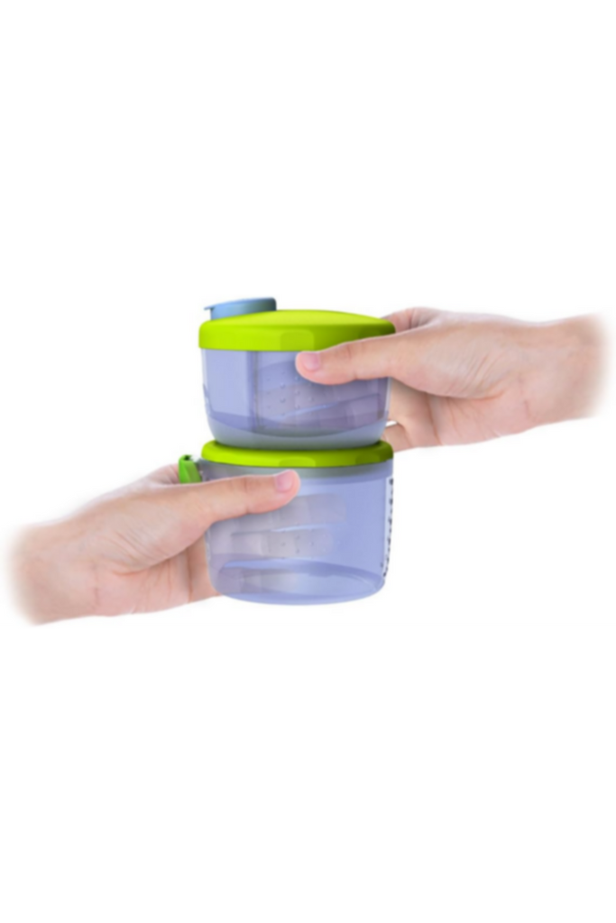 The milk dispenser comes with a container and makes breastfeeding and snacking easier. it helps you to prepare your little one's bottles when you are out. once the divider is removed the dispenser also helps you to carry and store snacks and also comes with a separate container.