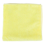 Yellow microfiber cleaning cloth. Dust, polish, and scrub your countertops and furniture with this versatile cloth. Made of microfiber, this cloth reduces surface debris and lowers bacteria levels by more than 96%. This soft material is packed with filaments, removing trapped mold, bacteria, and soil. It also absorbs moisture for streak free cleaning. Thanks to its thick design, this cloth can absorb over six times its weight in water. Featuring double stitched edges, this cloth can withstand up to 200 washing machine cycles and other rigorous cleaning applications. This cloth's light design makes it perfect for daily dusting task. Simply use the towel dry to collect fine dust through static charge. You can also use this cloth for light duty industry soils, as well as water and other substance spills. Unger's SmartColor MicroWipe UltraLite series comes in a variety of colors, enabling you to color code your clothes and reduce the risk of cross contamination during and between uses. When you identify a specific mess, you'll immediately know which colored cloth to grab!