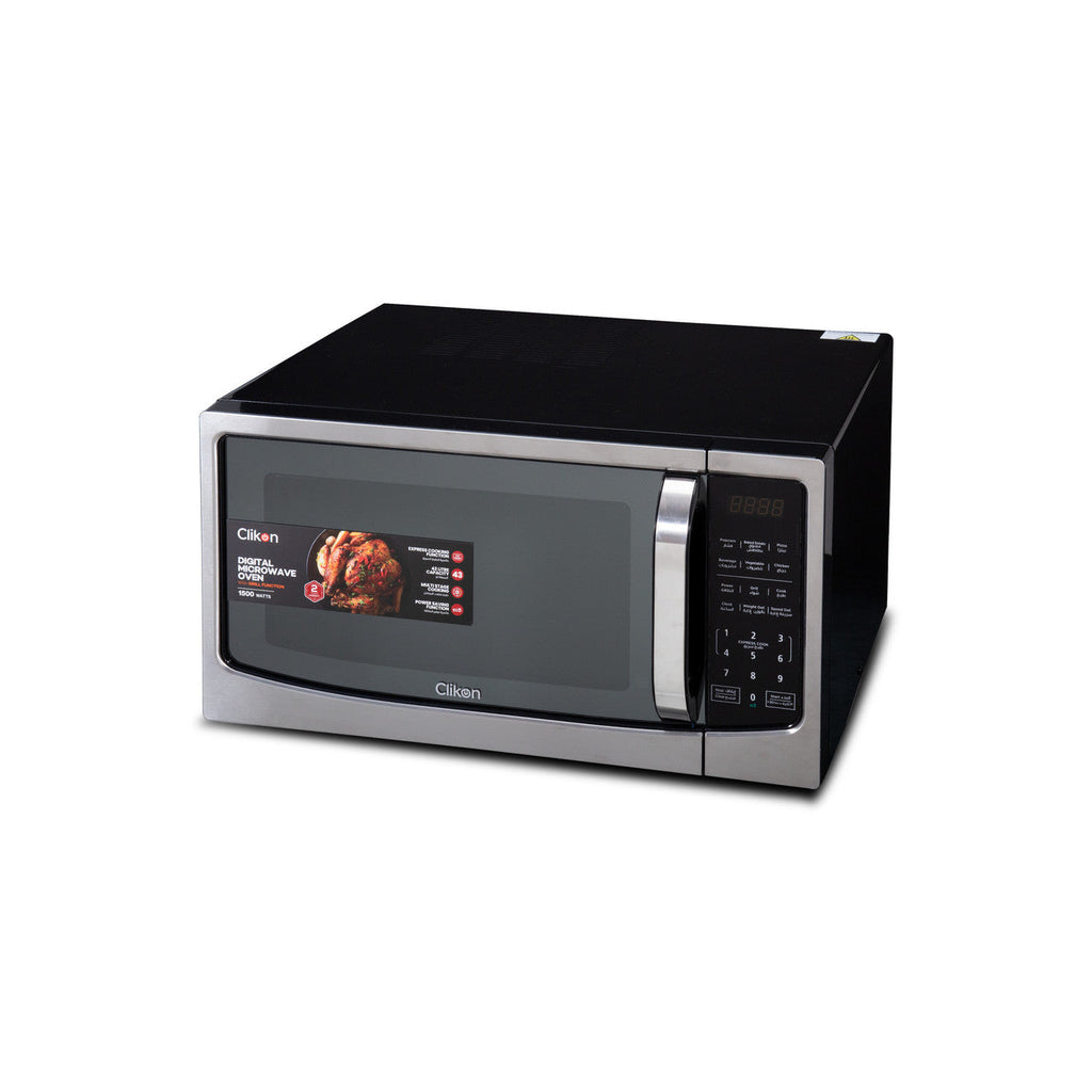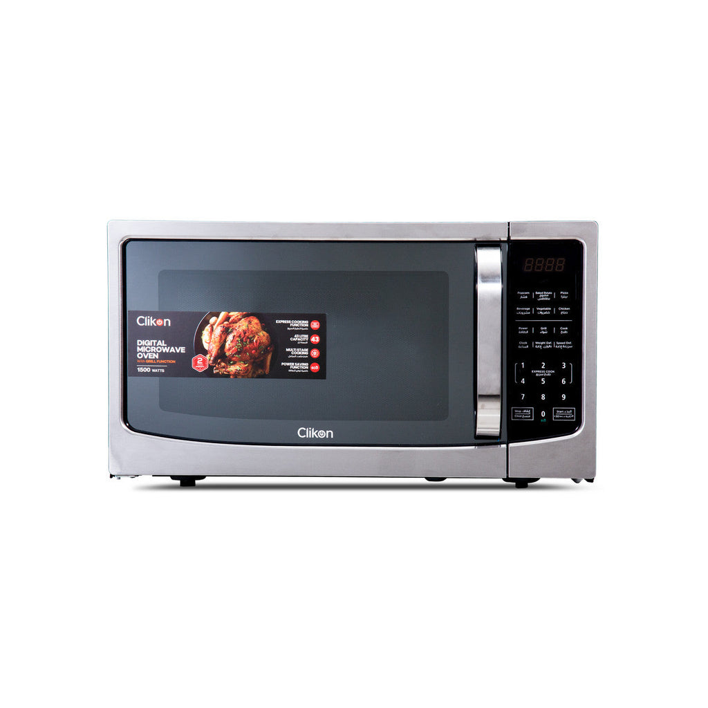 The Clikon CK4330 is a versatile 43-liter digital microwave oven that combines the functionalities of a microwave and a grill, making it an ideal addition to any modern kitchen. With its 1500W power output and multiple power levels, it ensures efficient cooking, reheating, and grilling. The appliance features a user-friendly digital interface, express cooking, multi-stage cooking, and a sleek design that complements various kitchen aesthetics.