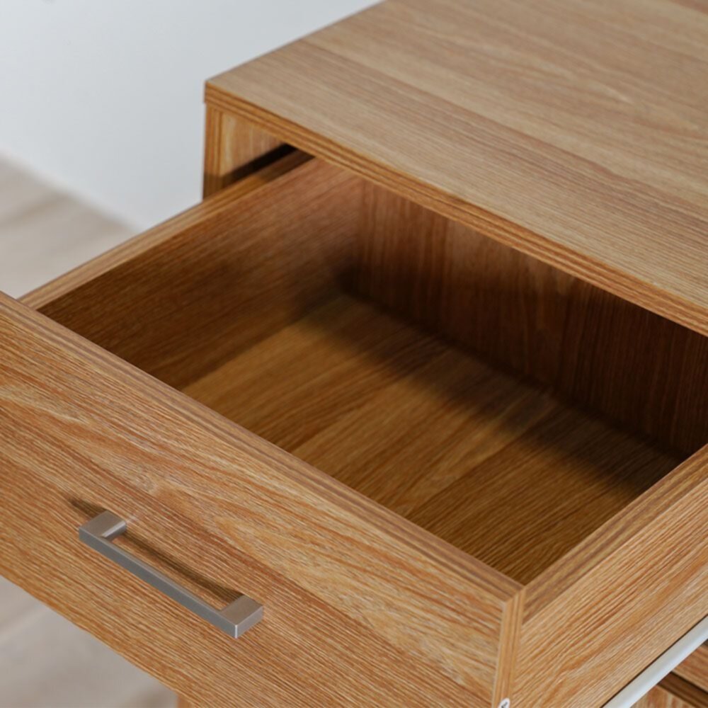 • The top surface, also made of wood, provides a convenient space to display decorative items or keep essentials within reach.