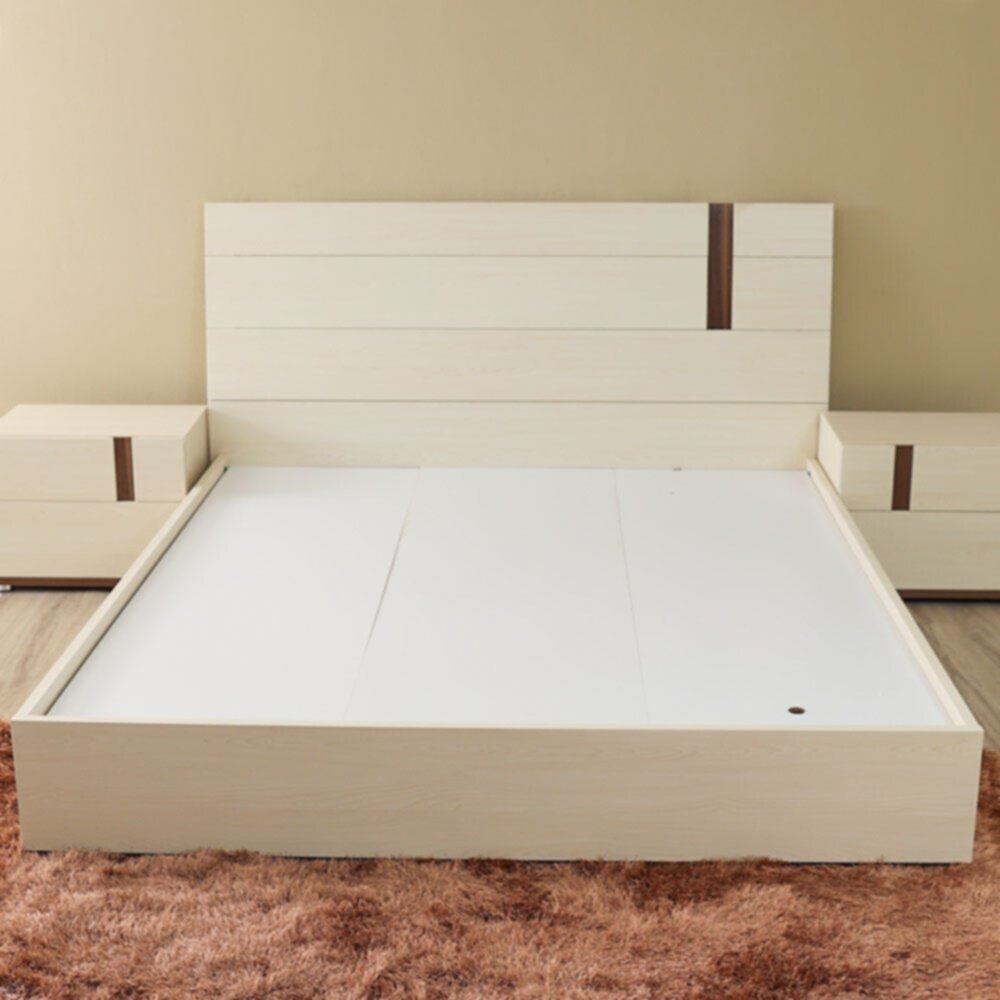 Simple and minimalistic style bedroom set for contemporary look. Made with combined MDF and Particle board materials. Glossy wood veneer look alike finish on MDF material with light color. Utility storage provided for keeping bedroom items. Easy to maintain product range fitting into cost effective, home budgets. Color Available – Maple White / Walnut Warranty Period – 1 Year With a sleek lined design, the Maybell king bed set is perfect for those who prefer a bright and spacious look. It is made from combined MDF and chipboard with a melamine finish for durability that would last you for many years to come.
