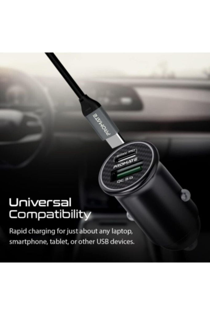 PROMATE | Ultra-Mini Car Charger With 60W Power Delivery And Quick Charge 3.0 USB Port | TE0198855