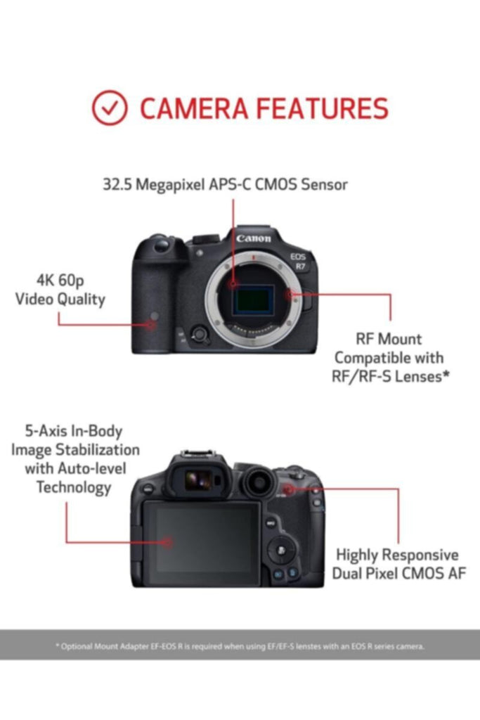 CANON | 32.5MP Mirrorless Camera (18-150 mm Lens, 22.3 x 14.8 mm Sensor + Mount Adapter | EOS R7 18-150mm