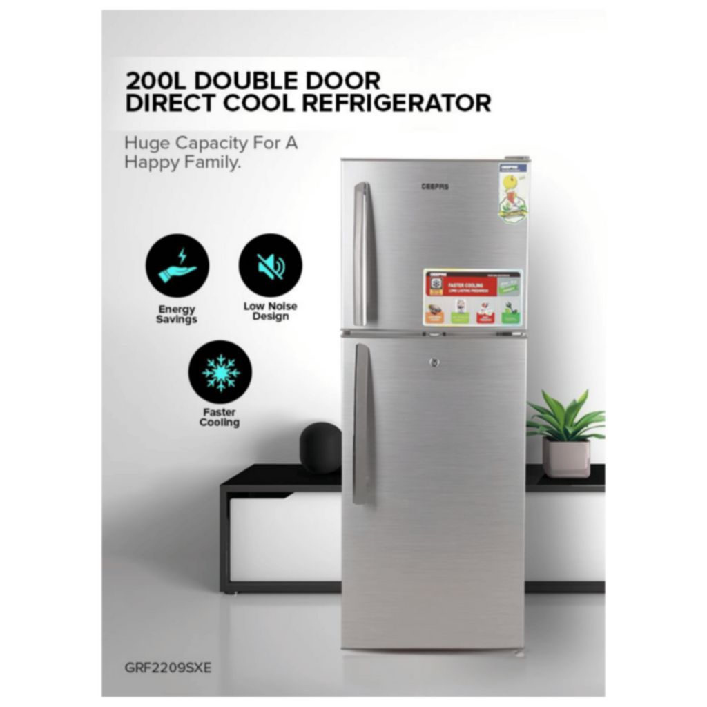 • FAST COOLING, LONG LASTING FRESHNESS, AND DEFROST REFRIGERATOR Geepas dual door refrigerator has rapid cooling performance & avoids holding ice. chill your drinks in no time. Enjoy fresh and sort crisper fruits, vegetables, meat, fish, Juices, milk products, and more contents fresh for a long time.