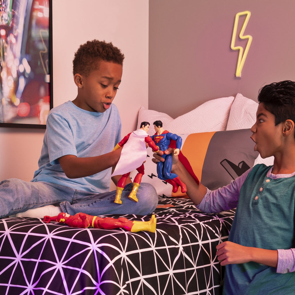 Create your own stories from the DC Universe with the DC Comics 12 Inch Action Figures! Each action figure features 11 points of articulation, a cloth cape and detailed comic styling that brings your favorite DC characters to life! Unite with iconic superheroes like the MAN OF STEEL, SUPERMAN and FASTEST MAN ALIVE, THE FLASH to help stop chaos in the universe. Engage your imagination and pose your action figure as you play out your own epic storylines and battles from the DC Universe! With a range of 12 inch figures to collect, expand your DC action figure collection with SUPERMAN, THE FLASH, SHAZAM! and WONDER WOMAN (each sold separately). Bring home exciting action play with the DC Comics 12 Inch Action Figures!