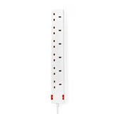 • Type G | 6 Way | 3.00 m | 3120 W | 13 A | Kind of grounding: UK Plug Earth pin | 230 V AC 50/60 Hz | Socket angle: 90 | H05VV F 3G1.5mm | White.
