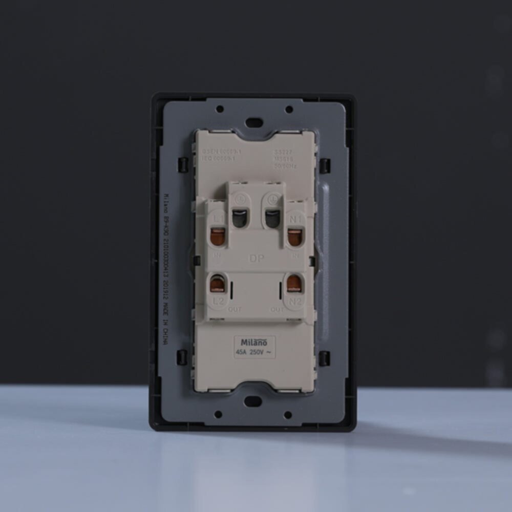 We use copper for terminals, brass for mechanical purposing parts like the metal in rocker, 16A silver alloy on the contactors for best electrical conductivity.