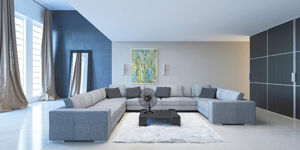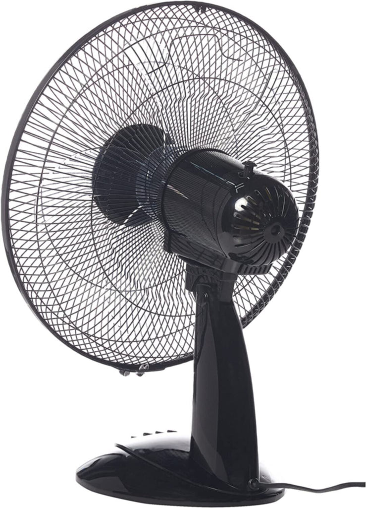 60 W Tropical rated motor 5 AS blade design for added durability 3 Speeds Low/Med/High 90O wide oscillation for improved air circulation Adjustable tilt for directing airflow 16 inch fan diameter Safety guard with grill securing clip.