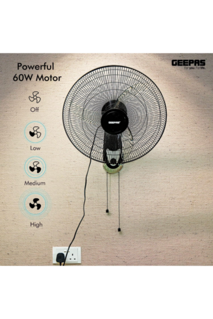 The fan has a powerful 60W motor which will ensure that the blades turn at a high speed to generate cool air quickly. Additionally, being wall mounted enables the fan to blow air forward from a height to circulate a larger area in the room which means it spreads further and is more effective. Self Protection when overheated.