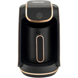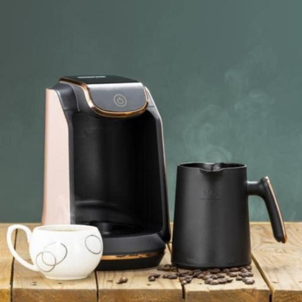 • EASY TO USE Drink the perfect cup of Turkish coffee with only one button. Put the amount of water into the Turkish coffee pot, then add Turkish coffee to the coffee pot using a spoon. Stir the coffee pot for perfect foam. In about 2 3 minutes, your perfect cup of Turkish coffee is ready to serve. Enjoy every sip.