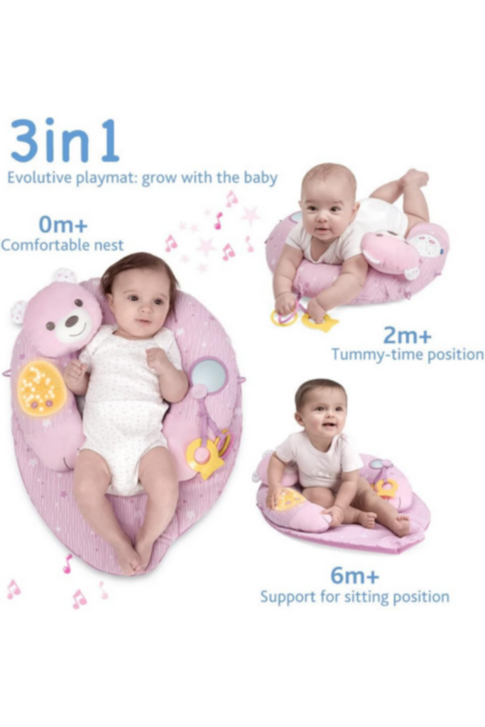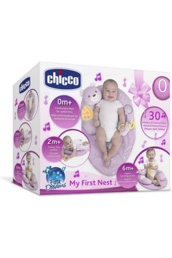 Chicco My First Nest is the evolutionary mat that allows your baby to relax during the various stages of growth. Comfortable and safe, Chicco My First Nest allows 3 different sleeping positions, ideal for facilitating the muscle and motor development of the baby. With automatic 30 minutes of classical music and delicate light effects, Chicco My First Nest creates a familiar and reassuring environment, a tender nest in which to grow up happy. Both the mat and the pillow are machine washable. 3 rest positions: Lying down: a comfortable nest for cuddling. Tummy Time: ideal for strengthening the baby's muscles in the prone position. Sitting: a soft support for the seat. Electronic features include 30 minutes of classical music. Dynamic light effect: delicate or lively according to the rhythm of the music. Also available in the blue version.