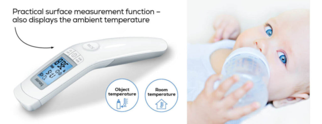 Measurement without skin contact! The clinical thermometer measures body temperature, ambient temperature and surface temperature.