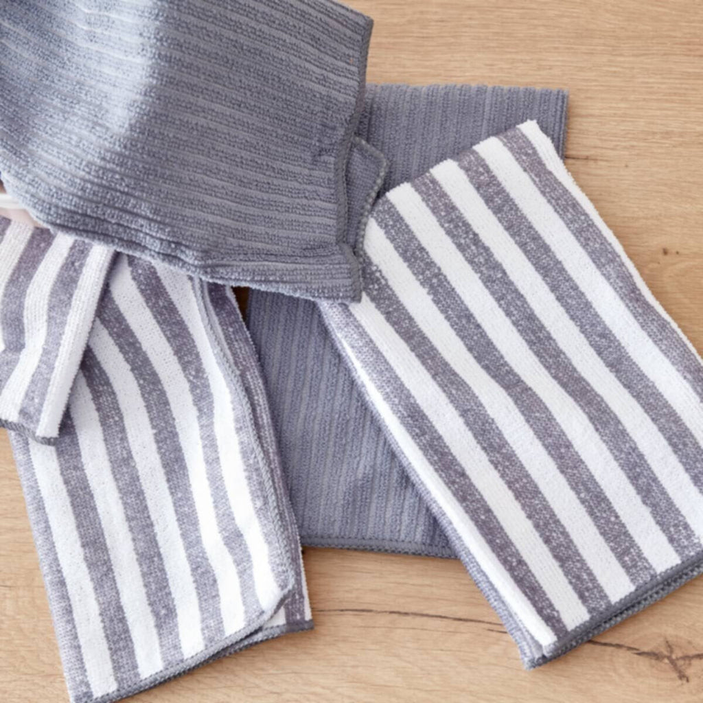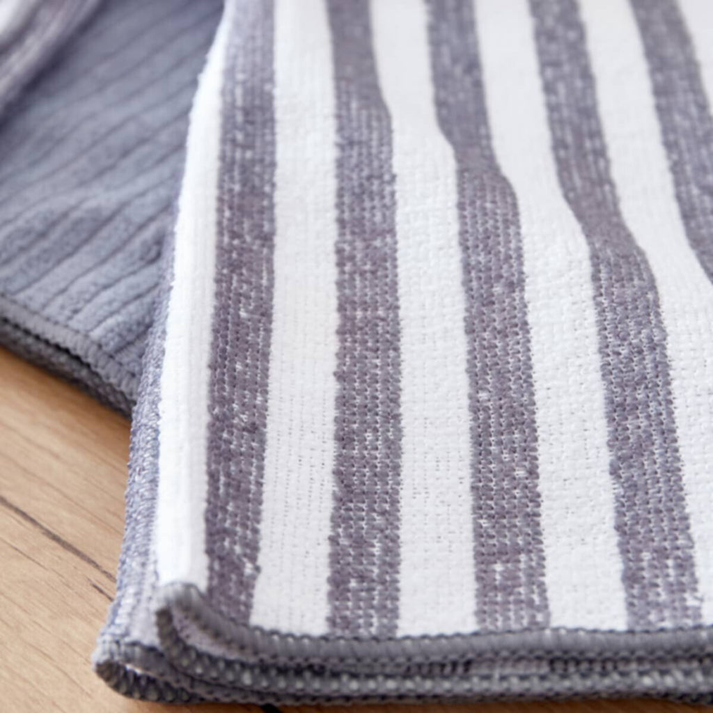 An effective buy for your regular cleaning, this set of four kitchen towels is a must-have. The set sports striped patterns and is made of polyester. It can be machine washed for upkeep. The product images have props used for illustrative purposes.