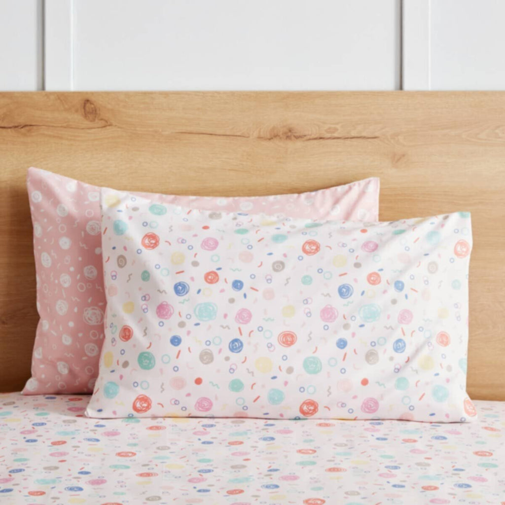 This set of two pillow covers is made from soft and cosy microfibre material. With a fun and playful doodle print, these pillow covers are perfect for adding a touch of whimsy to your kid's bedroom. Easy to care for, they are machine washable and colourfast.The product images have props used for illustrative purposes.